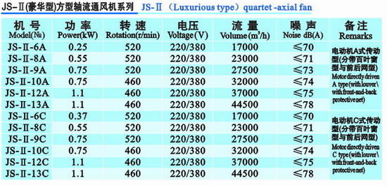 JS-II(C式)豪華方型軸流風機前后網(wǎng)型